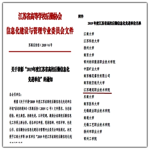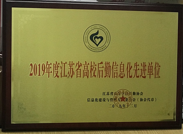 我们承接江苏建筑职业技术学院智慧后勤建设,荣获“2019年度江苏省高校后勤信息化先进单位”